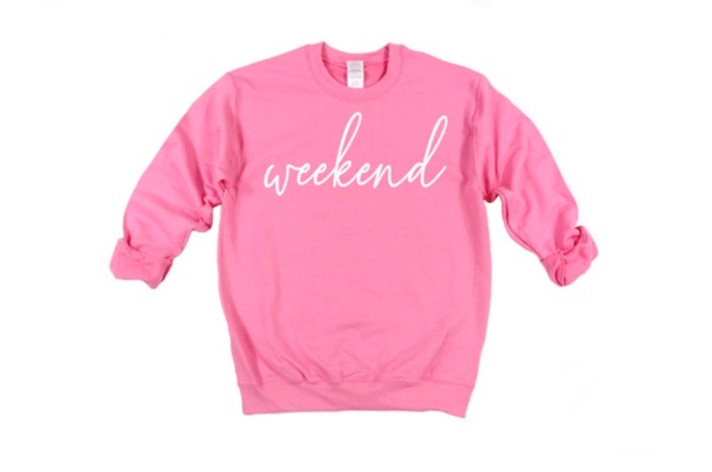 Living for the weekends!! Love this beautiful bright pink crew neck sweatshirt!