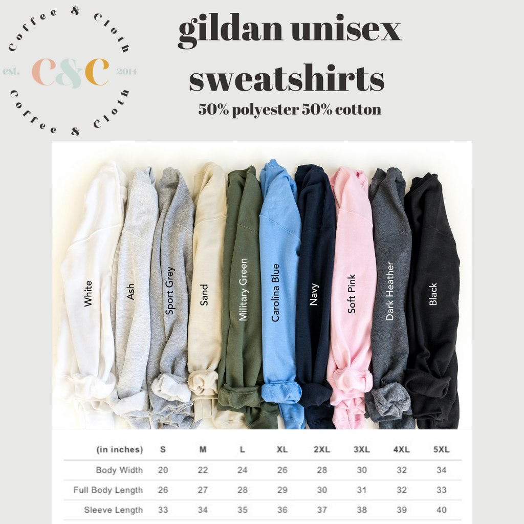 This specific sweatshirt is the gildan crew neck style and is in the color white and is single layered with smooth black vinyl.
